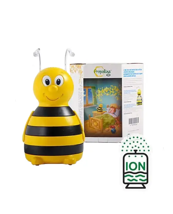 Ο διαχυτής πρόπολης με ιονιστή PROPOLINA P2 σε σχήμα μέλισσας προστατεύει τα παιδιά, αξιοποιώντας τις ωφέλιμες ιδιότητες της πρόπολης και περιβάλλοντάς τα με την απαλή και ζεστή λάμψη των κεραιών του. Η έκδοση Ρ1 είναι διαθέσιμη και σε έκδοση Ρ2 με επιπλέον ιονιστή, ο οποίος ενισχύει τις ιδιότητες απολύμανσης της πρόπολης. Όλα τα μοντέλα Propolina προσφέρουν κάλυψη μέχρι 30 τ.μ. Τα μοντέλα με ιονιστή συνιστώνται για παιδιά ηλικίας άνω των 3 ετών.