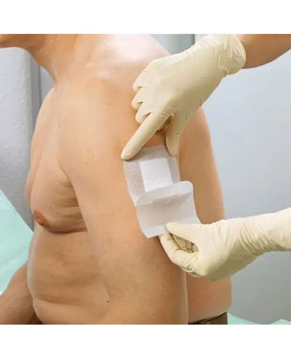 - Από απαλό μη υφασμένο υλικό (φλις) με ειδικό προστατευτικό κάλυμμα που δεν κολλάει στο τραύμα.