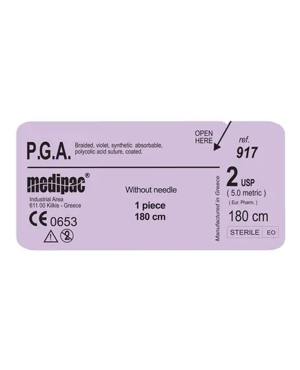 Συνθετικό απορροφούμενο χειρουργικό ράμμα πολυγλυκολικού οξέος PGA 2 μήκους 180cm.