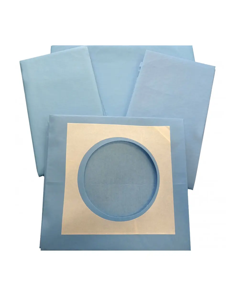 Xειρουργικά πεδία non woven μιας χρήσεως 2ply, αποστειρωμένα ατομικά, αυτοκόλλητα με διάμετρο οπής 6cm, με ένδειξη CE.