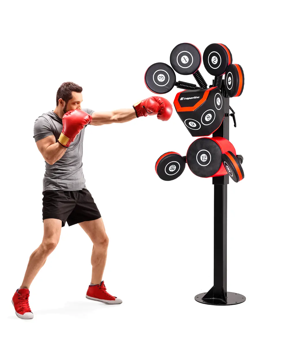 Tο Boxing Trainer inSPORTline Boxheist Fix είναι ένας εντυπωσιακός εκπαιδευτής πυγμαχίας. Όχι μόνο σας επιτρέπει να εξασκήσετε την τεχνική της διάτρησης, αλλά σας βοηθά επίσης να βελτιώσετε τη φυσική σας κατάσταση και την αντοχή σας. Οι 12 ειδικά τοποθετημένοι στόχοι με επένδυση, σάς επιτρέπουν να εξασκείτε uppercuts, hooks και άμεσες γροθιές και κάθε είδους συνδυασμούς από την άνεση του σπιτιού σας. Σας βοηθά επίσης να διατηρήσετε τη σωστή στάση του σώματος, κάτι που είναι εξαιρετικά σημαντικό στην πυγμαχία. Το συμπαγές υλικό θα απορροφήσει τις γροθιές σας, αποτρέποντας τον τραυματισμό. Η στιβαρή κατασκευή μπορεί να προσαρμοστεί στο ύψος σας. Οι στόχοι έχουν λευκούς αριθμούς πάνω τους, οπότε θα ξέρετε ποιους να χτυπήσετε για να εξασκηθείτε σε μια συγκεκριμένη γροθιά.