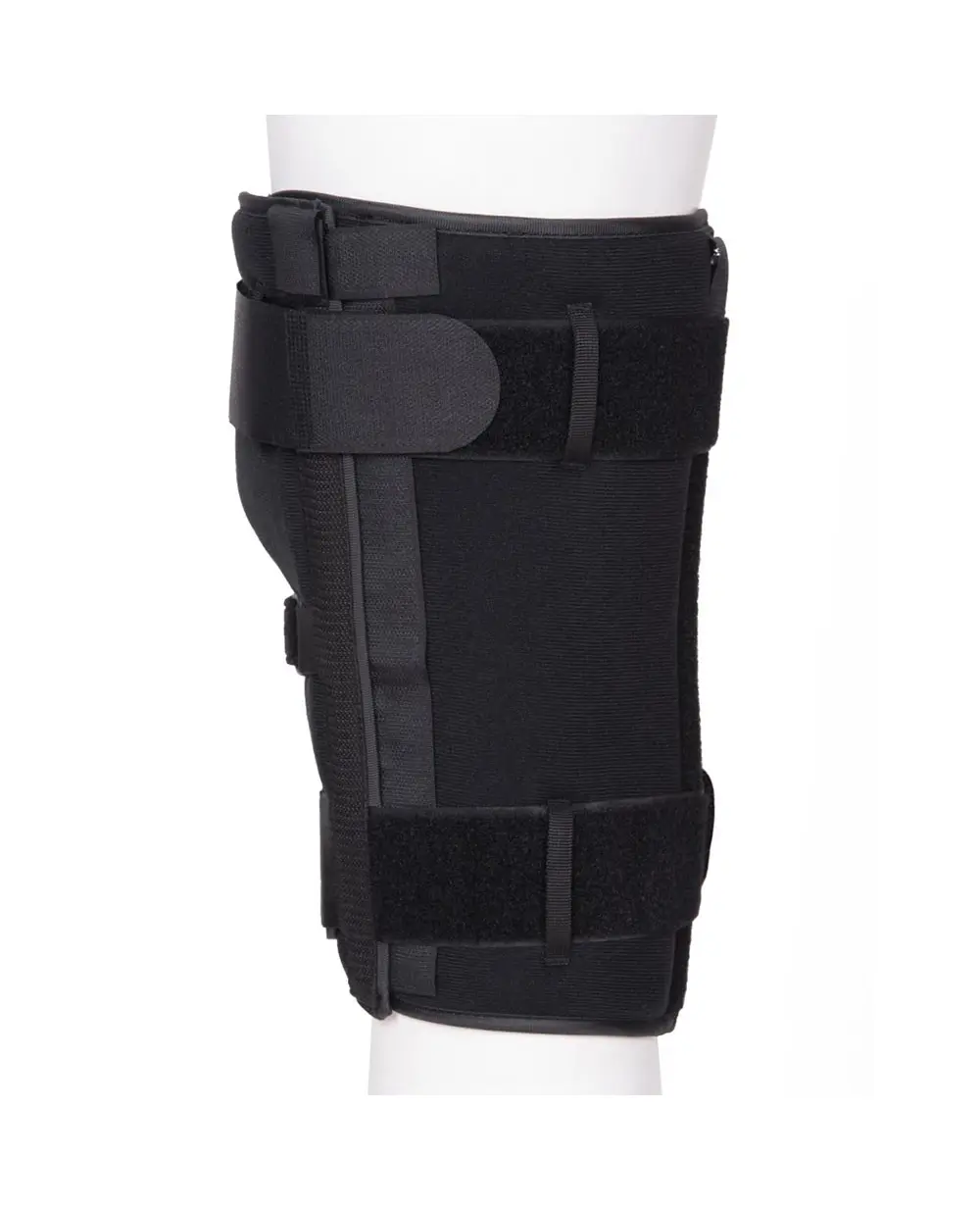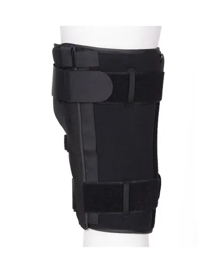 - Αυτοκόλλητα straps στα πλάγια τμήματα του νάρθηκα που ρυθμίζουν την περιφέρεια του νάρθηκα για να ταιριάζει σε όλα τα μεγέθη του μηρού και της κνήμης