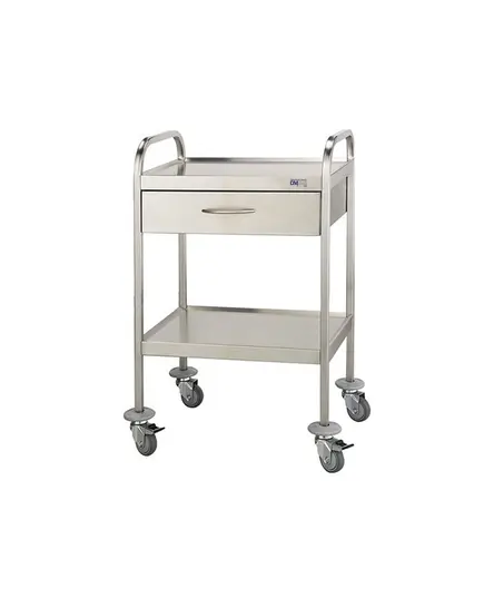 Τροχήλατο Τραπέζι Νοσηλείας Inox με Συρτάρι και 2 Επιφάνειες (40x60x80cm) D-30